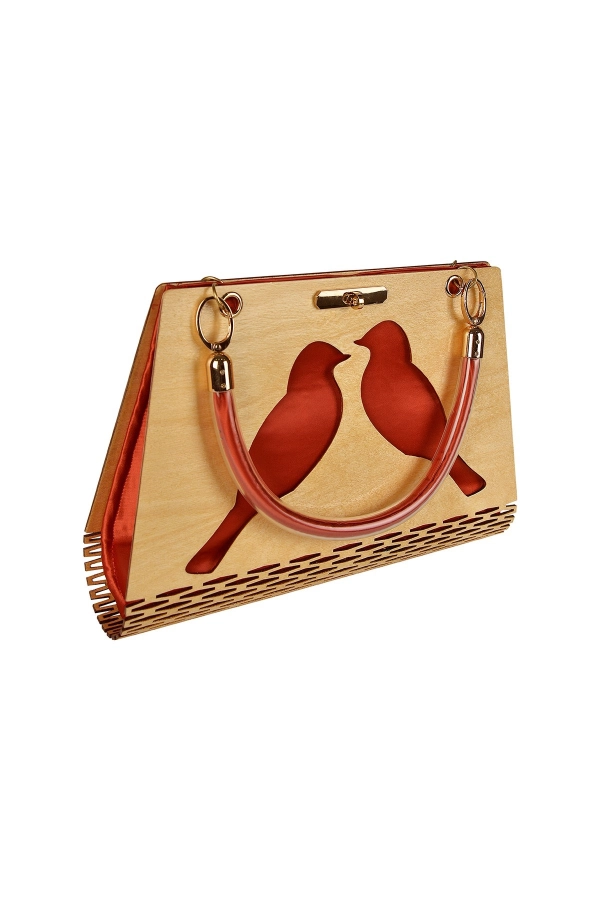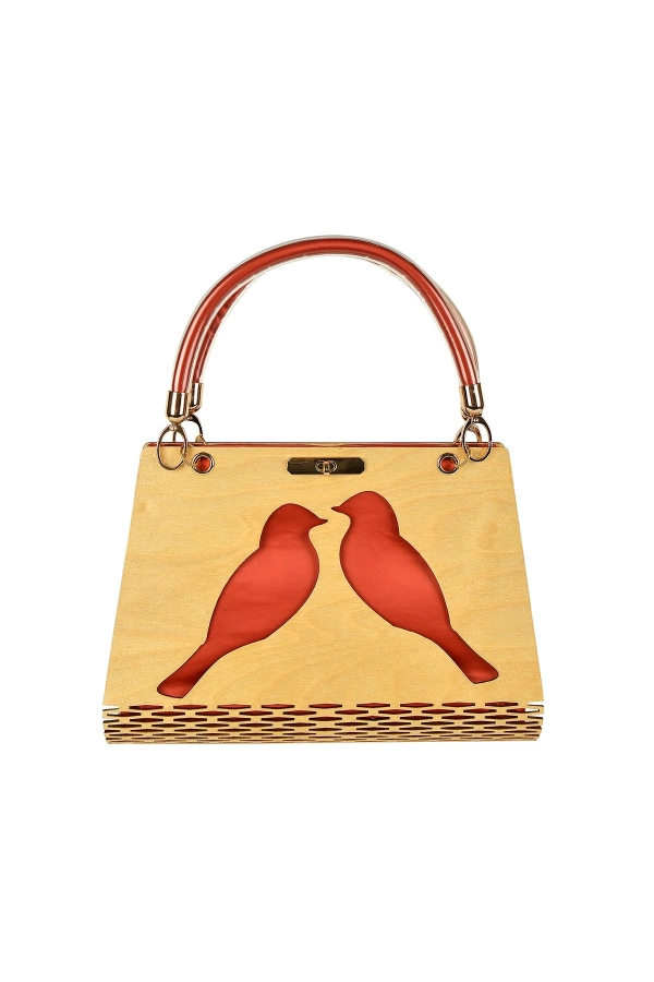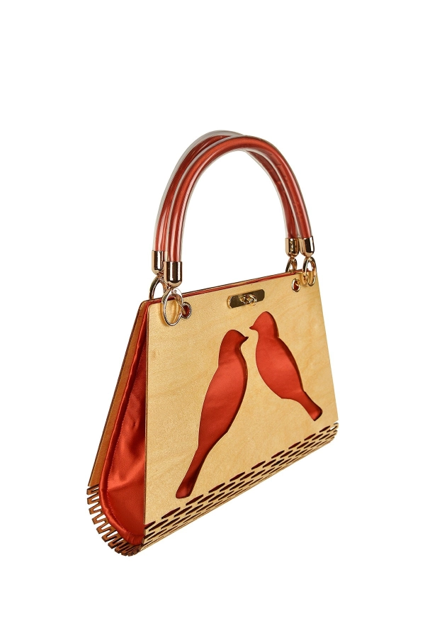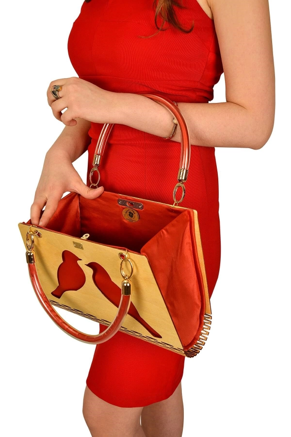 Ürün 3 mm'lik plywood huş ağacından yapılmıştır. Astarı nar çiçeği renginde saten ipekten yapılmış olup saplarda da kullanılmıştır. Suya dayanıklı hale getirmek için şeffaf vernikle güçlendirilmiştir. Alttaki genişliği 31,5 cm, üstteki genişliği 26,5 cm'dir. Çantanın açıldığındaki eni 14,5 cm, yüksekliği 22 cm ( saplar hariç ), 40 cm saplar dahildir.