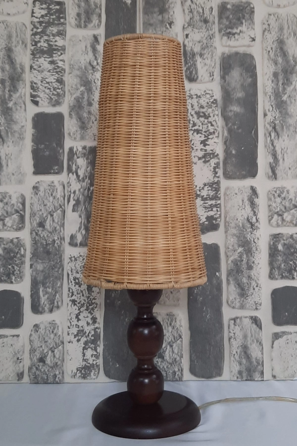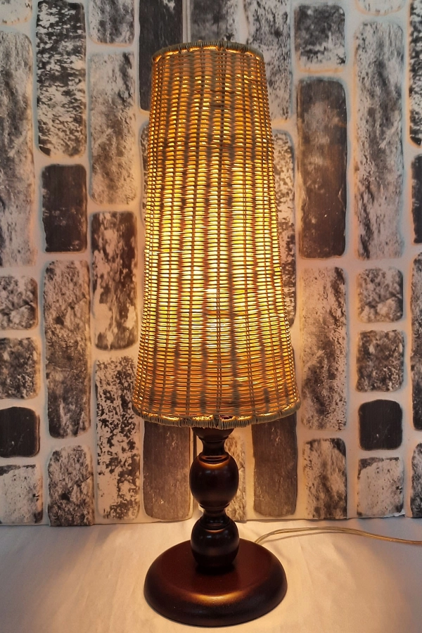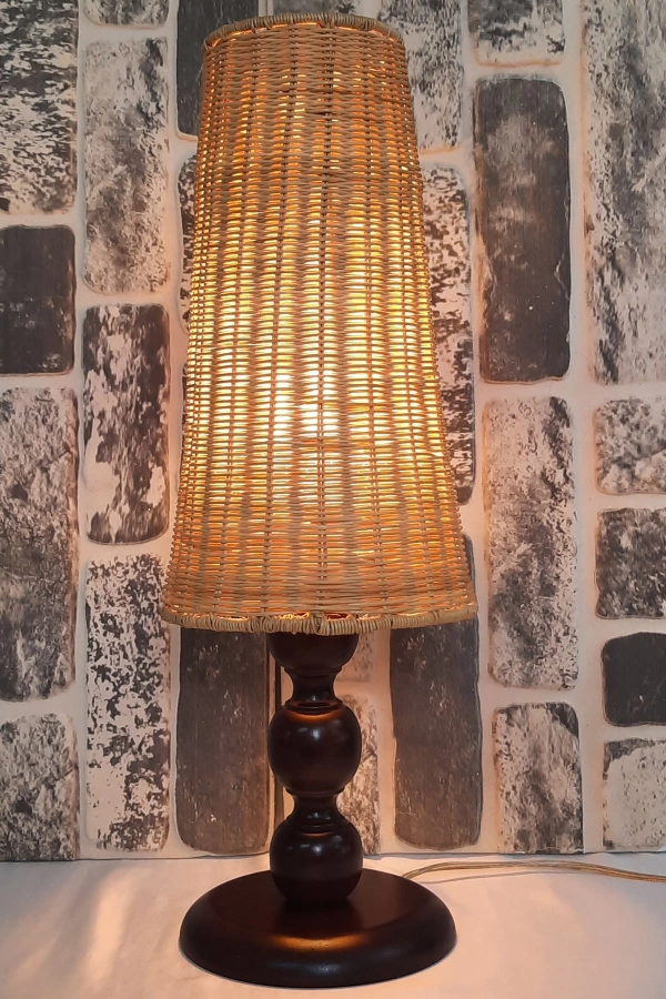 Ürün tasarımı ve imalatı Doğal Bambudan Sonay'ın Atölyesinde elle yapılmıştır. Şapka kısmı klasik düz kapatılmıştır. Ürün malzemesi doğal bambu olduğundan antialerjiktir. Mekanlar için çok şık , dekoratif bir üründür. Konik olarak tasarlanması mekana ayrı bir hava katmaktadır. Şapka kısmının alt çapı 19 cm, abajur yüksekliği 59 cm dir. E27 duy kullanılmıştır. Işık güçüne göre gün ışığı-sıcak sarı renk 5W dan 8,5W ye kadar Led Ampul kullanılması tavsiye edilir.