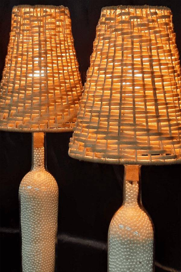 Ürün Sonay Hanım tarafından tasarlanmıştır ve imalatı Sonay'ın Atölyesinde elle yapılmıştır, Çok özel bir tasarım olup, kaide kısmında şişe kullanılmış ve iç kısmı beyaz inci ile doldurulmuştur. Şapka kısmında, doğal yatay bambu kullanılarak, dönen merdiven deseni uygulanmıştır. Ürün malzemesi doğal bambu olduğundan antialerjiktir. Mekanlar için benzeri olmayan çok şık , dekoratif bir üründür. Şapka kısmının alt çapı 20 cm , üst çapı 10 cm, yüksekliği 20 cm dir. Abajur toplam yüksekliği 49 cm dir. E14 duy kullanılmıştır.