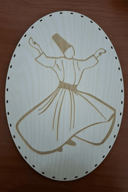 Sonay'ın Atölyesi'nde tasarlanan tepsi alt tabanları plywood 3mm lik ahşaptan yapılmaktadır. Yanlarının bambu ile örülmesi için bambu çaplarına uygun olarak delinmektedir. Oval tepsi tabanı yada bambu kullanarak saç örgüsü modeliyle yapılacak bir çerçeve ile DUVAR PANOSU olarak kullanabililisiniz. Ahşap tabana, dönen semazen işlenmiştir. Ölçüleri boyu 38 cm, eni 28 cm dir. Delik çapı 2-2,5 mm lik bambular için uygun olum 6,2 mm uzunlugundadır ve 3 bambu çubuğu girebilir. Resimler lazer makinasında yakma ile yapılmaktadır.