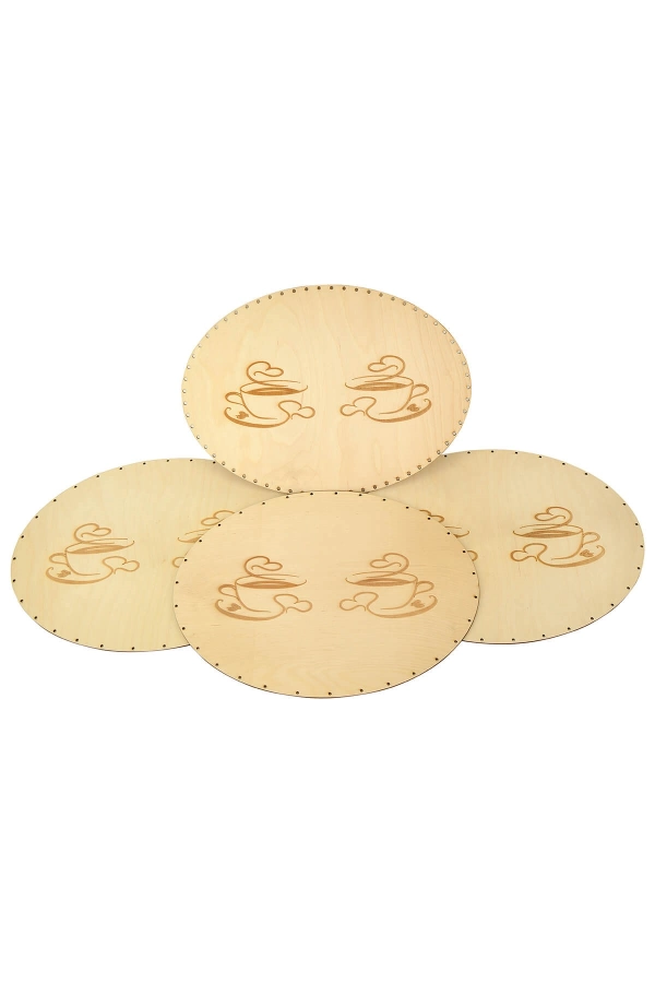 Sonay'ın Atölyesi'nde tasarlanan tepsi alt tabanları plywood 3mm lik ahşaptan yapılmaktadır. Yanlarının bambu ile örülmesi için bambu çaplarına uygun olarak delinmektedir. Oval tepsi tabanına kahve fincan resimleri işlenmiştir. Ölçüleri boyu 38 cm, eni 28 cm dir. Delik çapı bambu çaplarına göre 3 mm lik (5adet) ve 4 mm lik (3adet) olarak delinmiştir.
