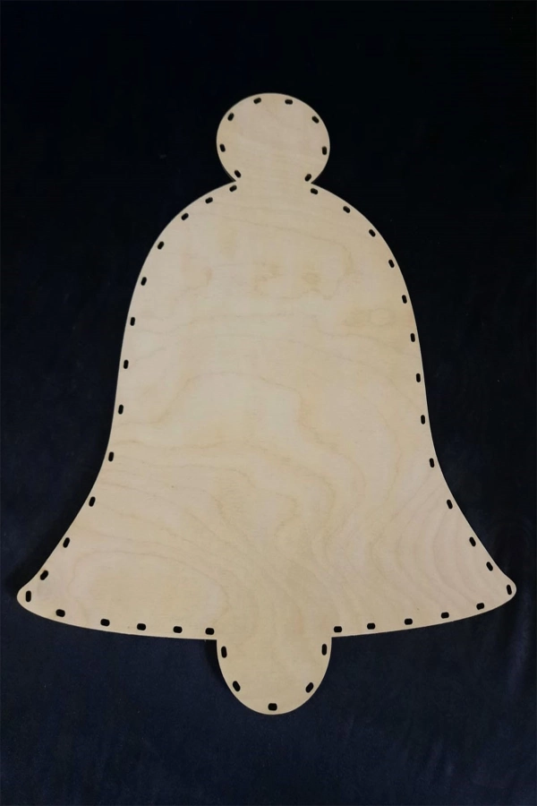 Yılbaşı dekorlarından biri olan Çan küçük sunum tepsisi ölcüsü boy 35cm ve alt en 33 cm , delikler yatay 5mm olarak 2mm lik 2 bambu yada 2,5mm lik 2 bambu girecek şekilde delinmiştir. Piyasada genelde makrome için delinmiş çok büyük delikler açılmış ürünler satılmaktadır ve kesinlikle bambu için uygun değildir ve kullanılması durumunda boşluk olmaktadır. Huş ağaçından kesilmiş olan ürün ham olup doğallık isteyenler için uygundur ve şeffaf yada renkli vernikle mat yada parlak bir görünüm elde edebilirsiniz. Bilindiği gibi Bambu ile çalışanlar su ile çalıştığı için MDF ürünü uygun değildir ıslandığında şişer ve dökülme yapar bu nedenle Rusya'dan ithal huş ağaçından yaptığımız tabanları rahatlılka kullanabilirsiniz, suya dayanıklıdır.